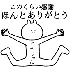「ともちゃん」が使う自由すぎるシュールで面白い名前スタンプです。とも/ともみ/ともえ/ともか/ともこ/ともよ/ともや/ともき/ともゆき/ともひろ/ともあき/朋子/友美/朋美