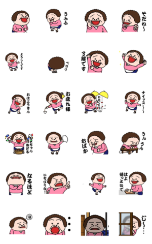 昭和のおばさんスタンプ第二弾です!よく使う基本の言葉多めです。竹本友二 より発売