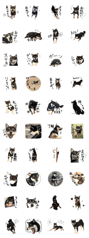 使いやすい言葉をシンプルに黒柴スタンプつくりました。c1rca38 より発売