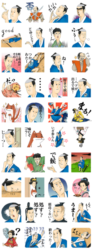 浮世絵ギャグ漫画「磯兵衛」のスタンプで候。浮世絵を活かしたような活かしてないような、磯兵衛世界をスタンプでもご堪能あれ。「処す?処す?」も標準装備で候。