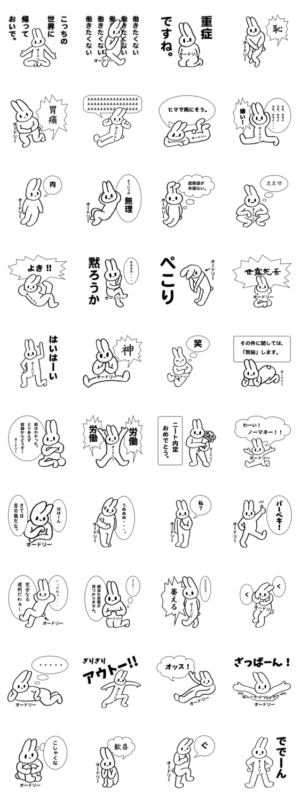 オードリーさん専用スタンプ。シュール、シンプル、うさぎ、ちょっと毒舌。ねこロック より発売