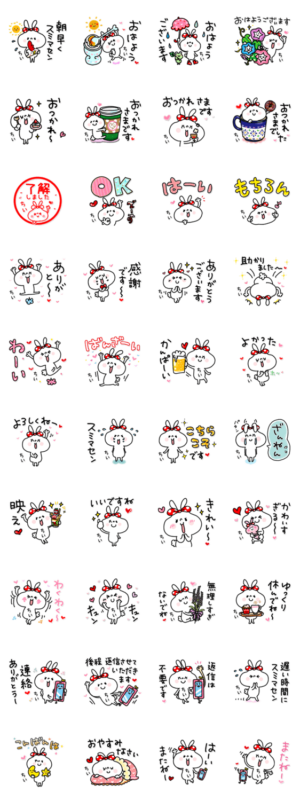 【ちぃ/ちー】うさぎリボン日常言葉&挨拶 スタンプ画像一覧