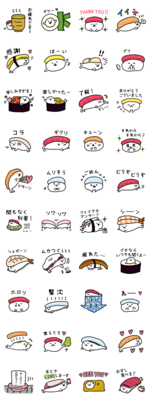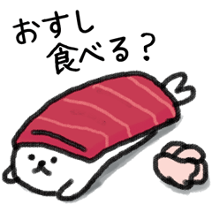 ちょっぴりシュールだけど、何だかほっこり癒される♪お寿司の国で暮らすアザラシさんのスタンプです。飽きのこないシンプル会話が中心。お寿司好きさんにどうぞ~☆