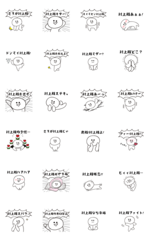 村上様を尊ぶための名前スタンプです。褒めて、励まして、応援します!むぎお より発売