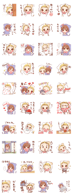 猫耳フードのチビの新作スタンプです。クレヨンタッチでゆるくてほんわかします。恋人友達におすすめです!時々毒舌があるので気をつけてください笑