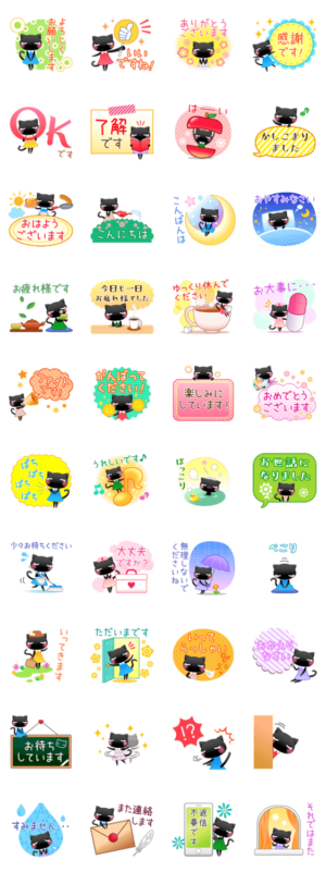 敬語で使いやすい!ほどよく可愛い黒猫のスタンプです。大人女子にオススメ♪春、夏、秋、冬、朝・夕・夜、毎日使えます!ジグノシステムジャパン より発売