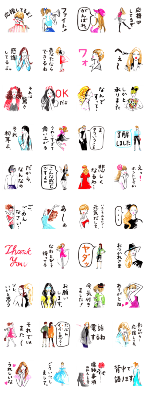 オシャレでモードな女の子のスタンプです。ファッショナブルでスタイリッシュなあの子が応援もするよ。