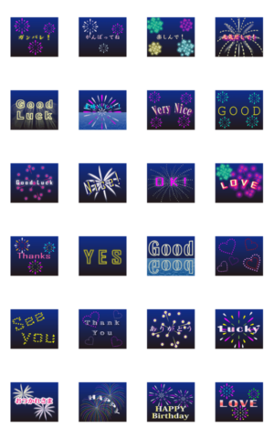 美しい花火と、便利なメッセージ。何度も見たくなる、素敵なスタンプ。mikance より発売
