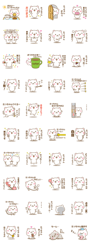 たつや,たつお,たつろう,たつひこ,たつみ,たつゆき,たつあき,たつのり,たつよし,たつひろ,たつし,たつじさんなど、全国のたっちゃんが使う名前スタンプです。パン より発売