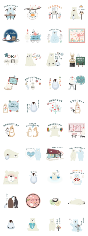 北欧風のシロクマ・うさぎ・鹿・ペンギン・フクロウ・ハリネズミなどの動物達で繰り広げる楽しい会話とちょっとお洒落で丁寧なご挨拶