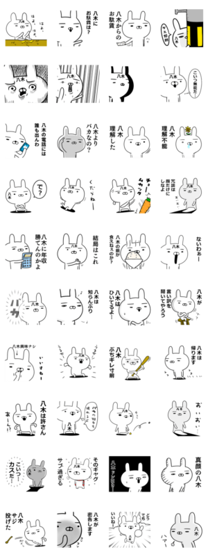 日本全国の苗字の中,八木さんの為の毒舌うさぎスタンプが登場。便利で名字が,やぎ・やき・はちきサンに使える‼家族,友達から,ヤギちゃん・ヤキさん・ヤッちゃんへ♡