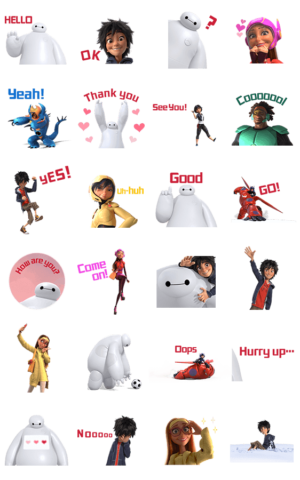 ディズニー映画「ベイマックス」のアニメーションスタンプ。ベイマックスをはじめ、少年ヒロや仲間たちも登場。映画で印象的なシーンを多数取り入れた楽しいスタンプです♪