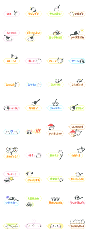 吹き出しまえなが第5弾。 カラフルなデコ文字の使いやすいシマエナガスタンプです。卯月つくし より発売