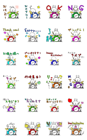 バンドマン、ドラマーさんが使いやすい日常スタンプです。 無表情なうさぎがドラムを叩きます!三月うさぎ つぅ より発売