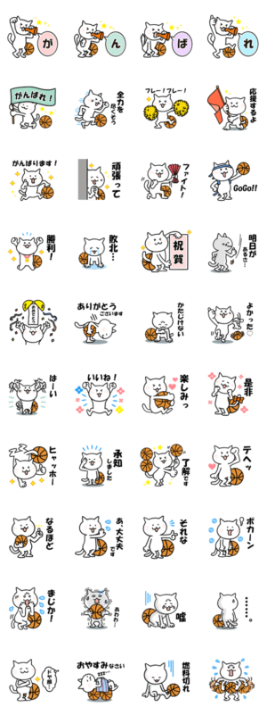バスケと猫を愛する人のためのスタンプです。主に応援で使う言葉編!yamyam より発売