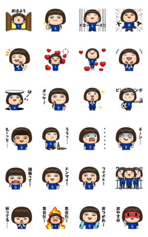 青いサポーターの女子 ゼッケン5番 スタンプ画像一覧