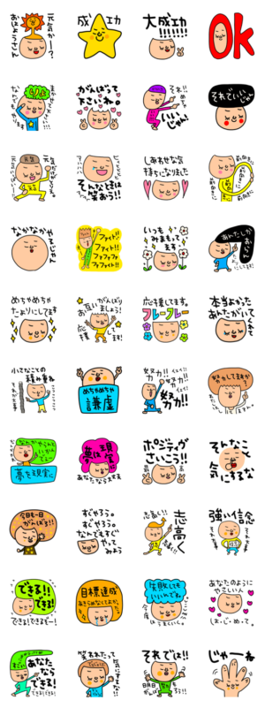 応援スタンプ。ポジティブなスタンプ。相手を元気やる気にさせるスタンプ。志の高い言葉のセット。riekim より発売