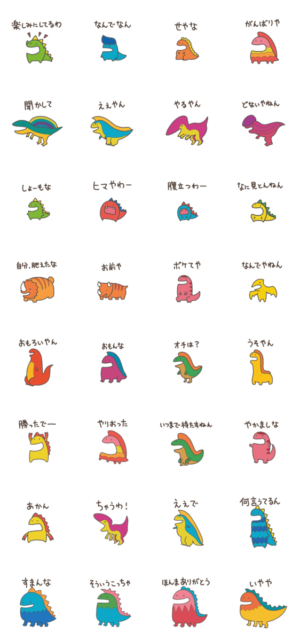 関西弁を喋るカラフルな恐竜のスタンプですABHACHI より発売