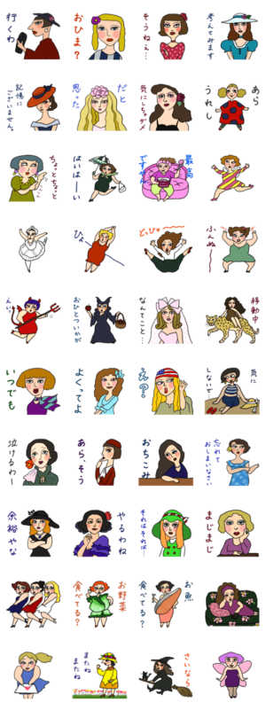可愛くて面白い、オシャレユニークな女性達のスタンプです。思い切り自由にお楽しみください!WH より発売