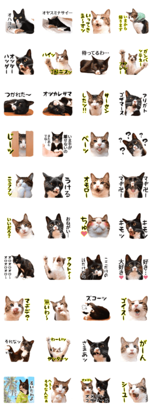 ねこ写真4コマ あずきさんとだいずさんのスタンプ第一弾。表情豊かな2匹がおもしろおかしく気持ちを伝えます。猫好きさんとのやりとりにゼヒ使ってください。