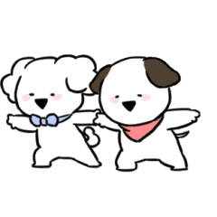 ハイテンションでケンカするほど仲がいい!?「すこぶる動くウサギ」フレンズ。いつでもラブラブなカップルわんこの、かわいいチビver.スタンプです!恋人や友達・家族に♪株式会社DK より発売