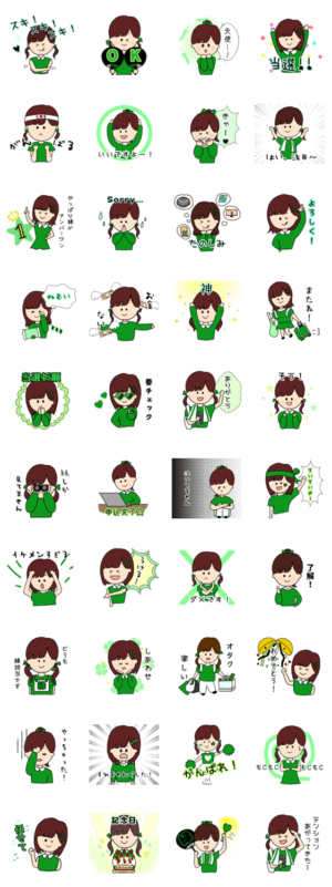 *緑色担当・応援スタンプ*緑色のTシャツやジャージを着た女の子のスタンプです。アイドル好き・オタクの方へ。日常会話で使えます♪ニーズがあれば他色も◎