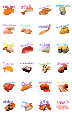 タイ語の実写のお寿司のスタンプのダウンロードはこちら↓
