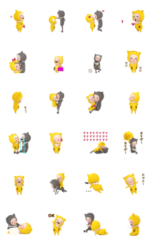 【動く】ねこ❤️ラブ❤️カップル【3D】 スタンプ画像一覧
