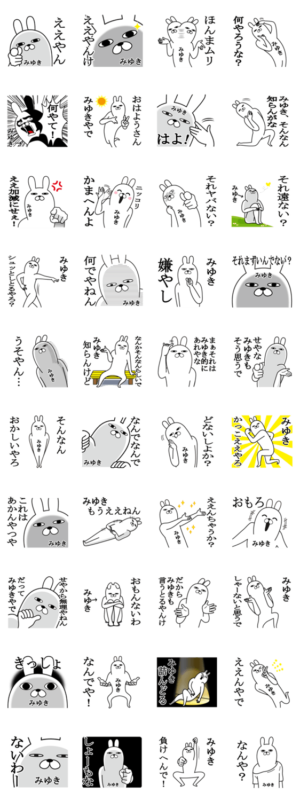 みゆきちゃんが使うスタンプです。美由紀、美幸、御幸、幸、美雪、深雪、美優紀、見雪、三由紀、三友紀、実有紀,実由紀,大阪弁,京都弁,奈良弁,岡山弁,神戸弁,兵庫弁,滋賀弁