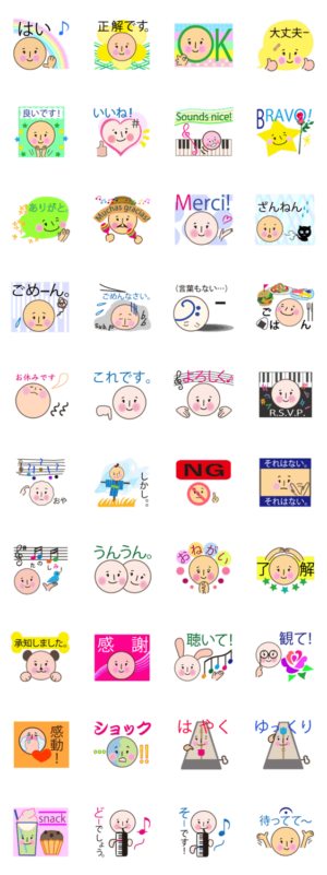 ふだん使いのひとことがいっぱい。楽しくかわいくメッセージを伝えます!すっきり見やすいスタンプ。音楽好きにおすすめ。