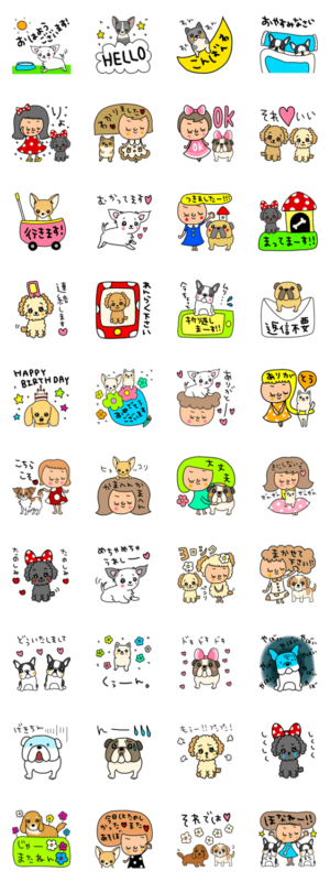 犬いっぱい。よく使う言葉でセットにしましたー!かわいいものからシュールなものまで。riekim より発売
