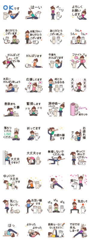 YOGA&ネコ好きさんのためのスタンプ。応援・励まし・気遣い・思いやり言葉。敬語中心で使いやすい優しいスタンプです。