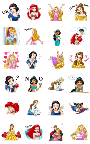 ディズニープリンセスの動くスタンプです!にぎやかなスタンプをラインに飾ってトークを盛り上げましょう!