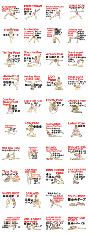 これらのスタンプは、ヨガポーズで、ヨガをする時や、ヨガインストラクターの方が、メニューを組み立てるのに、かなり使えるスタンプです。こちらは、パート3です。