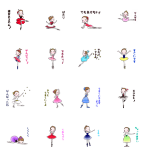 キュートで可愛い女の子がバレエを踊るスタンプです。 励ましの言葉、激励、応援・声援など盛沢山。 ちょっとお洒落な感じ。プレゼント、贈り物にも。友達家族、恋人に。