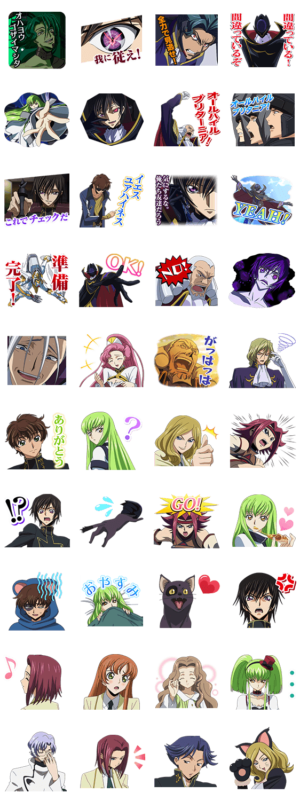 「コードギアス 反逆のルルーシュ」のLINEスタンプが、名シーン、名セリフ満載でついに登場!ルルーシュ・ヴィ・ブリタニアが命じる…全力で押しまくれ!