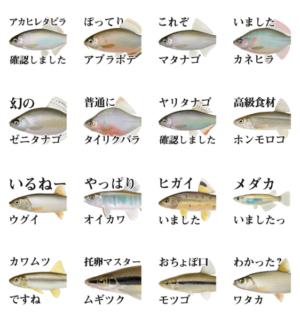 釣りや水辺遊びガサガサなどで、魚を発見、ゲットしたときにつぶやけるスタンプです。仲間や家族にスタンプを送って釣果、成果を自慢しよう。日淡好きにも!