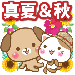 真夏から秋まで送れるスタンプです。暑い日、大雨の日、涼しい日も使えます。猫と犬どちらも大好きな方にオススメ♪マキたん より発売