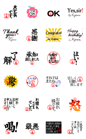 時には真面目に時には力強く、時にはオシャレに時にはかわいく。はんこメインのデカ文字小島さんスタンプです。
