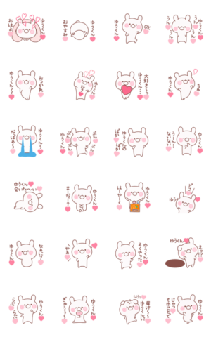 ゆうすけ、ゆうた、ゆうじ、ゆういち、ゆうま、ゆうや、ゆうき、ゆーくん、ゆうちゃんなど大切なゆうくんへ送ってください。カップルお友達向けさあや作の動く名前スタンプ