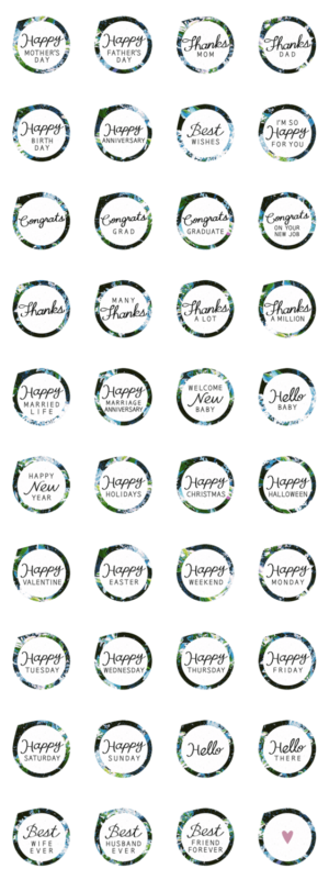 新年、クリスマス、ハロウィーン、バレンタイン、イースター、母の日、父の日、誕生日、記念日、結婚、出産、卒業、就職など、イベントやお祝いに使える水彩スタンプです。