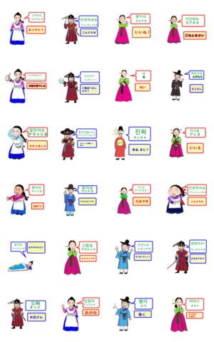 韓国歴史ドラマの衣装のキャラがハングル文字表記と読みの挨拶。yogotty より発売