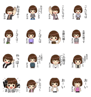 まなみさんの名前入りスタンプ。あいさつバージョンです!べるうっど より発売