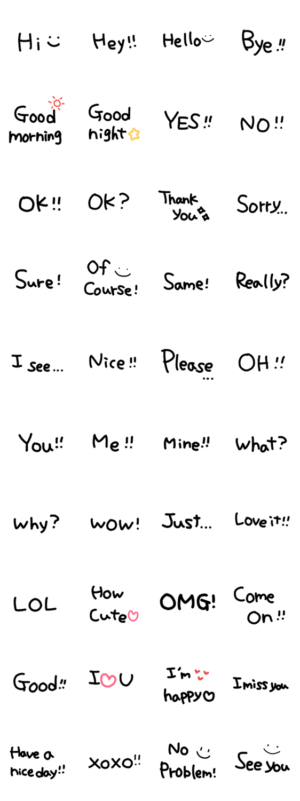 よく耳にする英語をスタンプにしました!外国の方とのコミュニケーションにもご利用ください♪Sachi より発売
