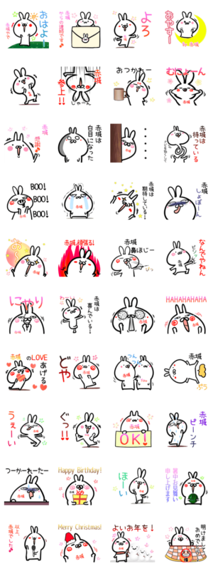 あかぎ アカギ 赤城 Akagi用の可愛いウサギのゆるい名字/苗字/名前(なまえ)/あだ名スタンプです。誕生日祝い,暑中お見舞い,クリスマス,お正月挨拶入り♪むらびと【名前・アダ名のスタンプ&着せかえ制作】 より発売