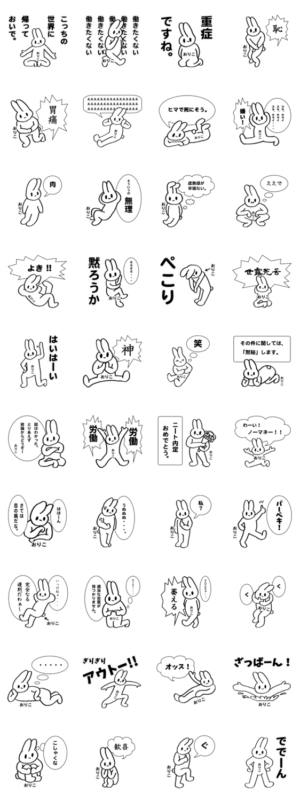 おりこ(オリコ)専用スタンプ。シュール、シンプル、うさぎ、ちょっと毒舌。イッレ・コスヤ より発売