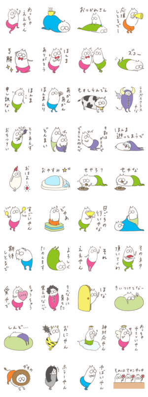 ねこタイツの関西弁バージョンのスタンプです。ネイティブ関西弁の方へエセ関西弁の方へ関西弁ラブな方へ関西人になりたい方へ誰とでもゆるい関西弁がお楽しみいただけます