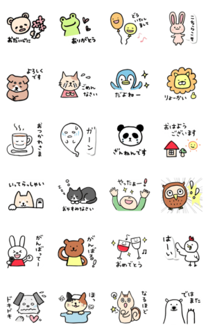 ありがとう、お疲れ様等のよく使うフレーズと、お大事に等、使用頻度が高いのにあまりセットにないフレーズを詰め合わせました。男子も女子も使えるシンプルなスタンプです