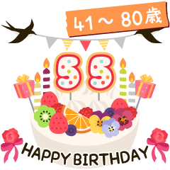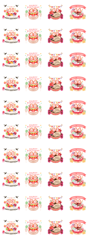 年齢の誕生日お祝いケーキスタンプです。41歳から80歳までのローソクです。