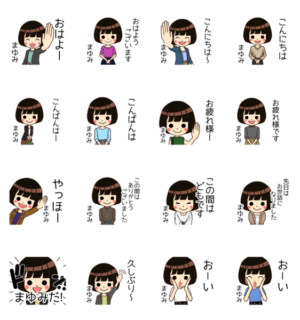 まゆみさんの名前入りスタンプ。あいさつバージョンです!べるうっど より発売